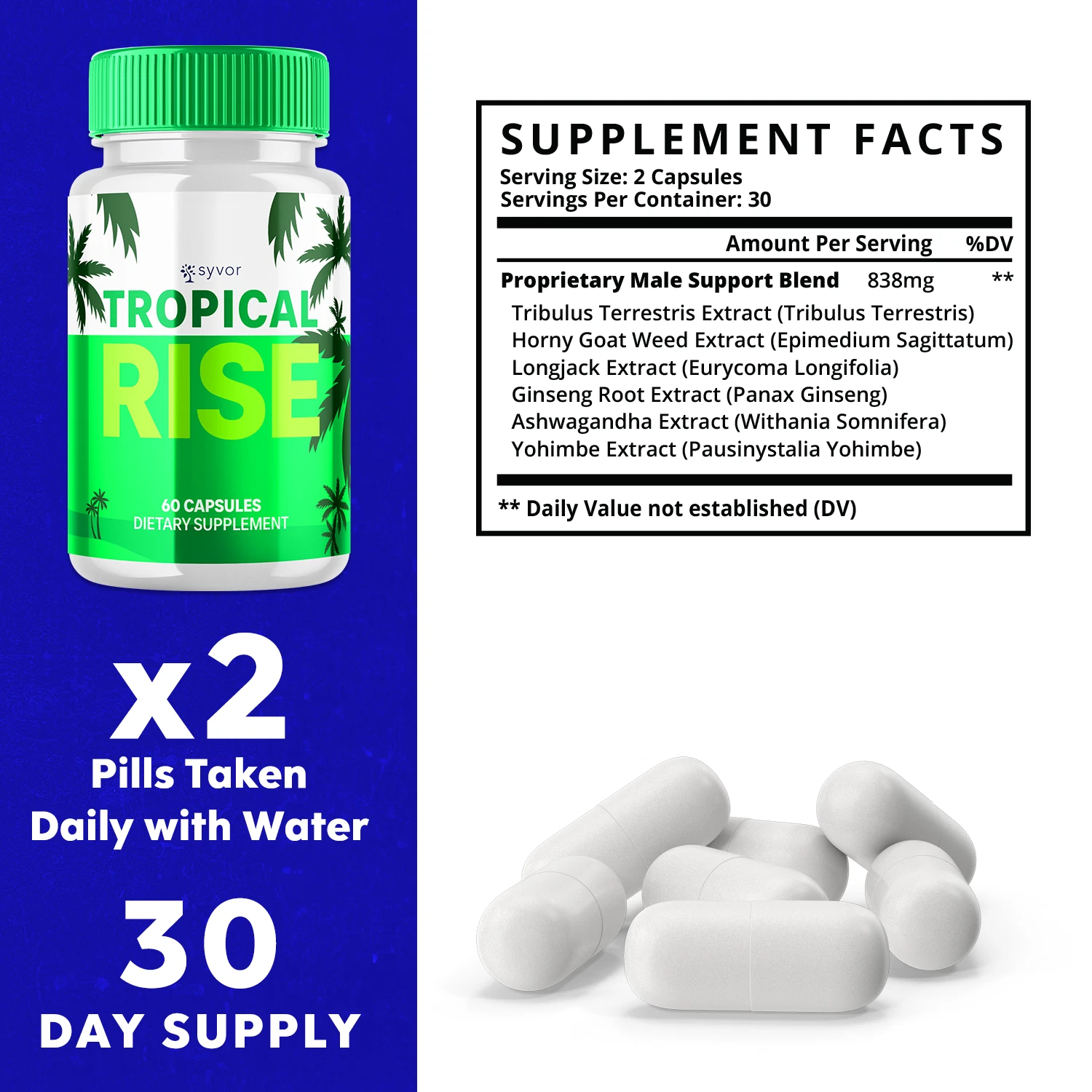 With 60 easy-to-swallow capsules, this supplement is perfect for men looking to enhance their daily performance, support natural strength, and maintain peak wellness. Whether you’re seeking improved energy, better focus, or long-lasting vitality, Tropical Rise is crafted to deliver results you can feel.