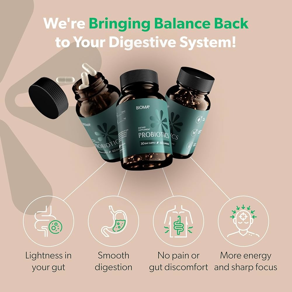 Bioma Probiotics 60 Capsules – Digestive Support, Maintaining 3 IN 1 Gut Health ( 1 PACK )